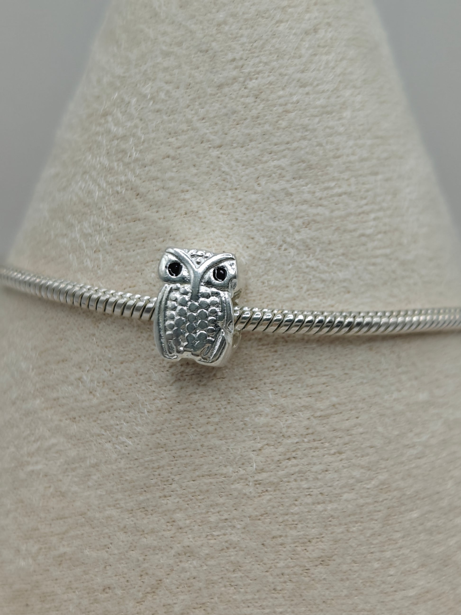 Wise, graceful, and full of symbolism, this Owl Charm represents knowledge, intuition, and quiet strength. Beautifully crafted with delicate detailing, the owl’s finely sculpted feathers and expressive eyes bring this timeless symbol to life. Its polished finish catches the light with subtle brilliance, adding depth and character to the design.